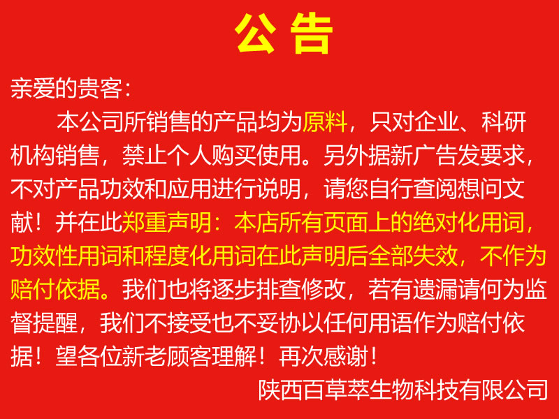 陜西百草萃生物科技有限公司,位于陜西省咸陽市秦都區(qū)濱河西路1號(hào)大秦御港城,公司成立于1996年,主要從事天然植物種植、研發(fā)、生產(chǎn)、加工、銷售為一體的高科技企業(yè)。主營醫(yī)藥原料、保健品原料、化妝品原料,精細(xì)化工原料。公司致力于人類健康保護(hù)事業(yè)“ 以科技為動(dòng)力,以質(zhì)量求生存” 的本質(zhì),依托陜西高新科技技術(shù)人才和科研優(yōu)勢,已形成多學(xué)科、全方位、高層次的技術(shù)管理精英團(tuán)隊(duì)。充分利用秦巴山區(qū)的天然藥物資源,歷經(jīng)多年發(fā)展為打造百草萃生物品牌奠定了基礎(chǔ)。